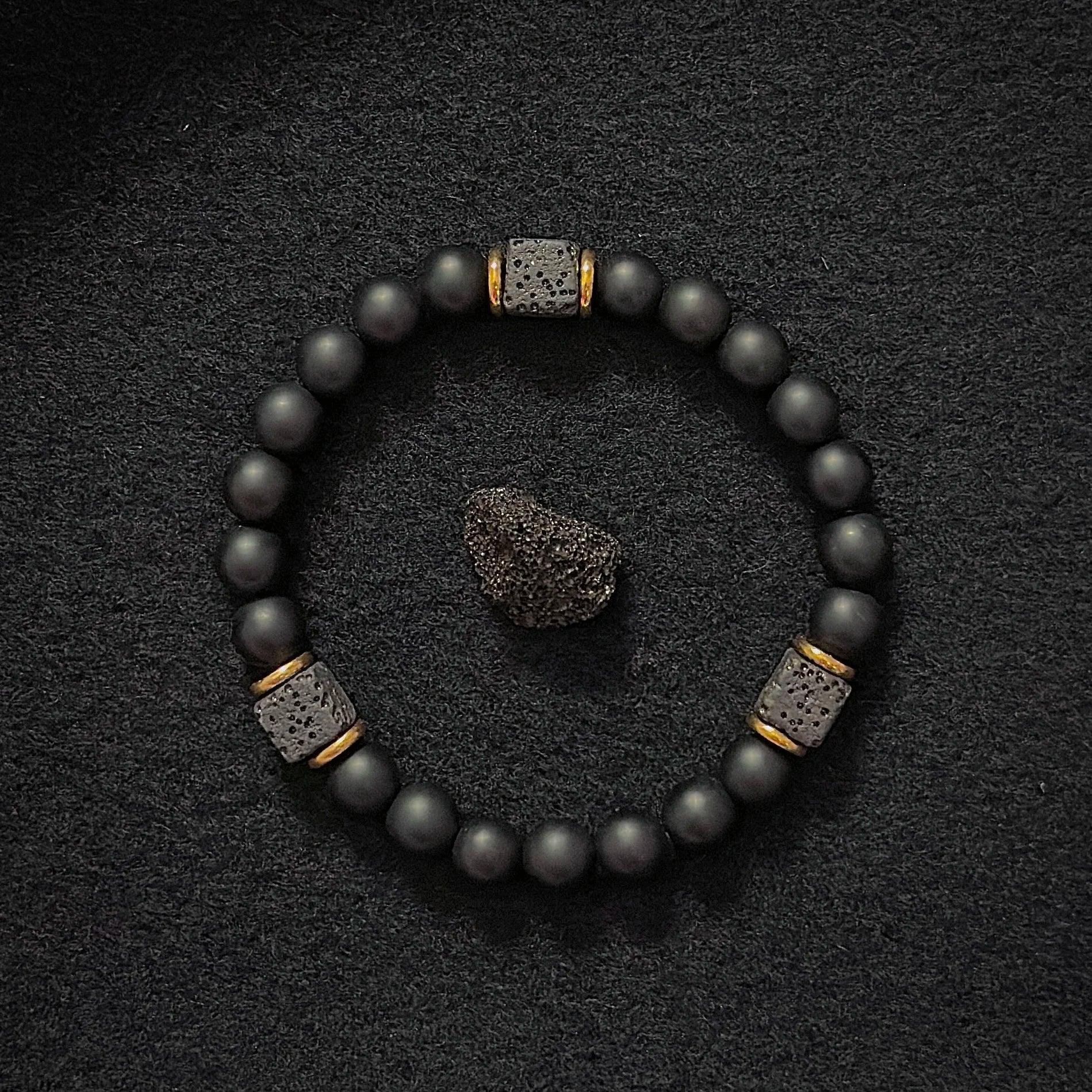 Elegantes Stretch-Armband mit Schwarzem Onyx & Lavasteinen – für innere Stärke & positive Energie